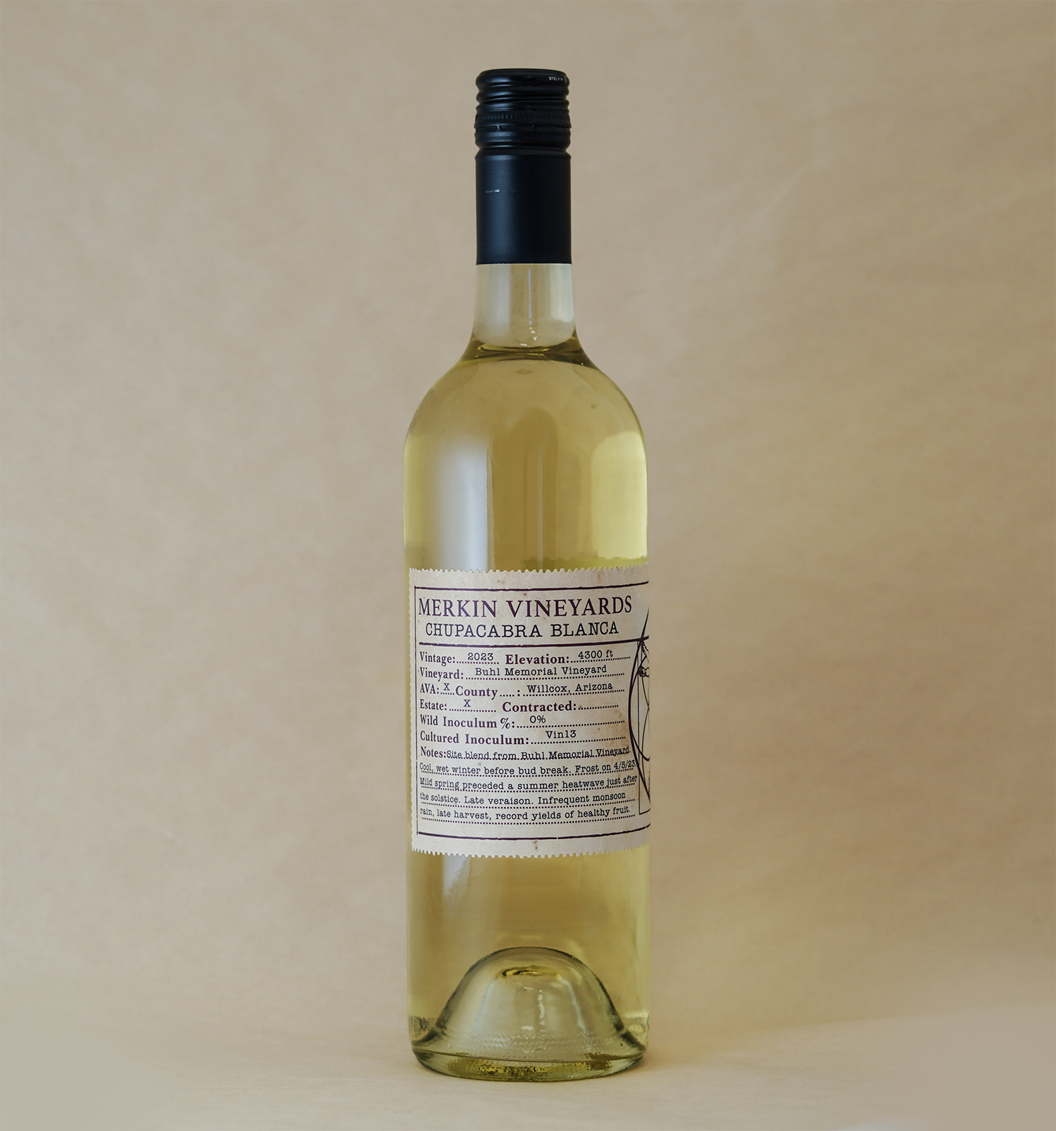 The Chupacabra Blanca opens with aromas of citrus blossom, lemon peel, and ripe pear with hints of white peach and fresh herbs. The palate is crisp and textured, balancing lively acidity with a mid-palate richness. Flavours of stone fruit and citrus carry through to a clean, mineral-driven finish with a subtle savoury edge.